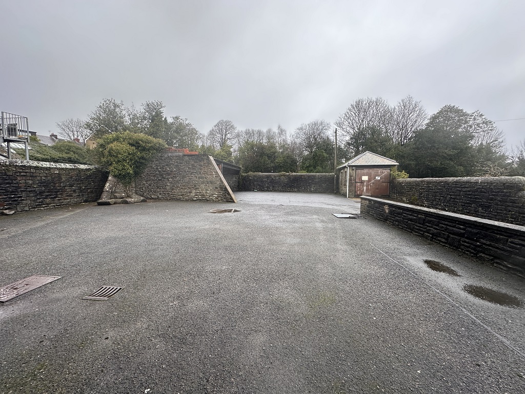 Externally, there is a driveway to the side of the building leading to a large rear carpark. There is a stone-built storage shed and carport within the rear carpark. There is a large stone boundary wall enclosing the majority of the site.