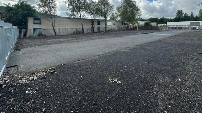 The land occupies a rectangle shaped plot which is level and finished with chippings. The area is enclosed with palisade fencing with a gate fronting onto Alamein Road and a rear potential access point via the Riverside House estate.